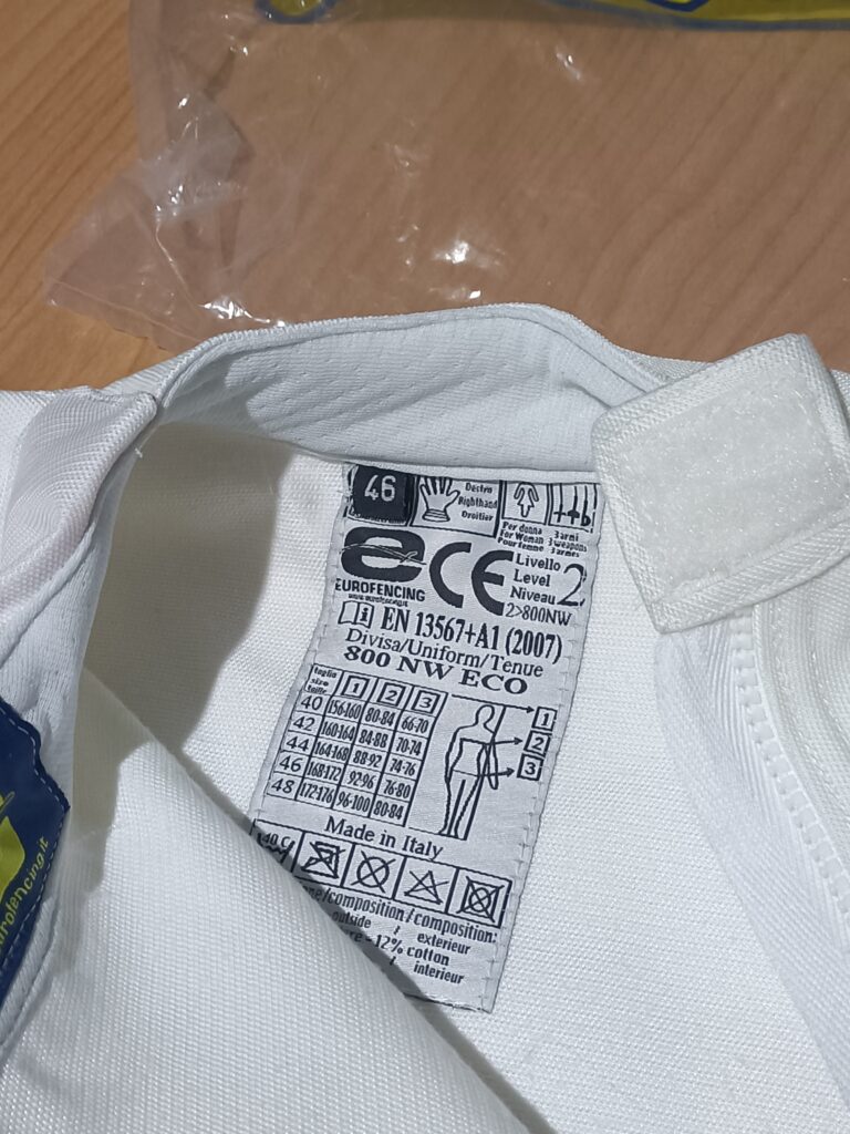 Divisa scherma NUOVA donna 800N, taglia 46, marca Eurofencing, MAI usata